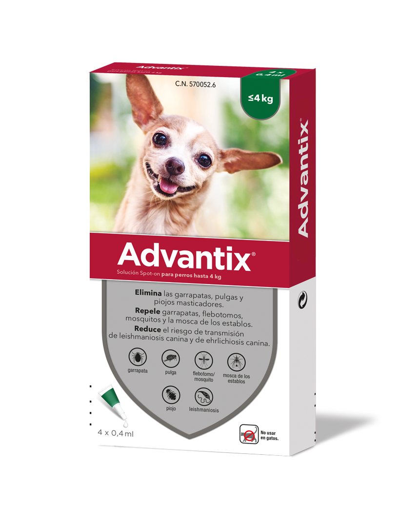 O Advantix® deve ser aplicado no seu cão a cada 4 semanas, é a recomendação geral da marca. No entanto, deve sempre consultar o seu Médico Veterinário. Advantix® não só impede as carraças, mosquitos, flebótomos e moscas picadoras de se fixarem e picarem o seu cão, como mata pulgas, carraças e piolhos quando estes entram em contacto com o pelo ou a pele do seu cão, não sendo sequer necessário que piquem.