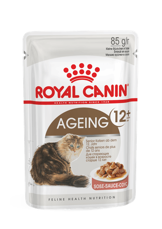 Alimento completo para gatos seniores com mais de 12 anos (fatias finas com molho).